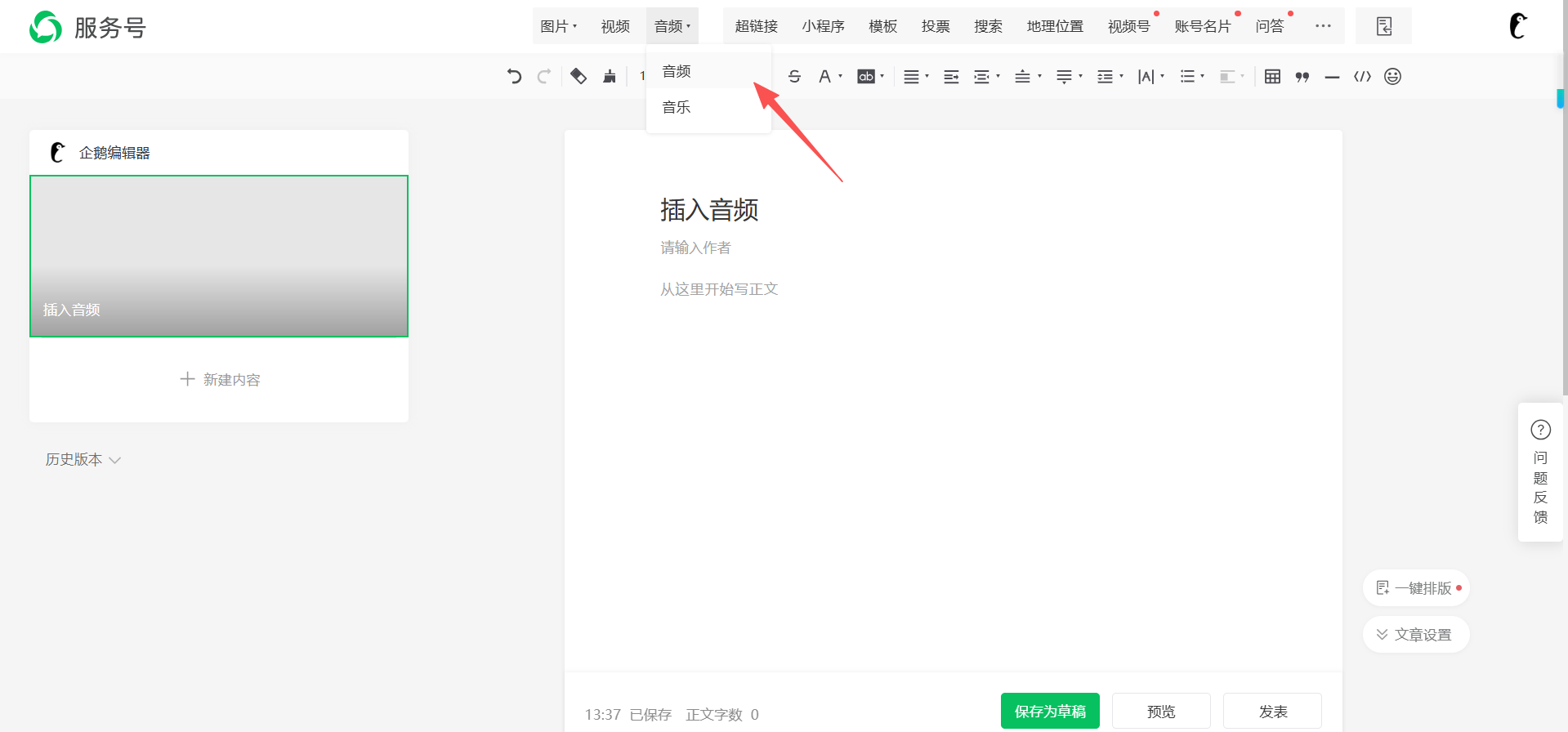 2:点击上方音频按钮