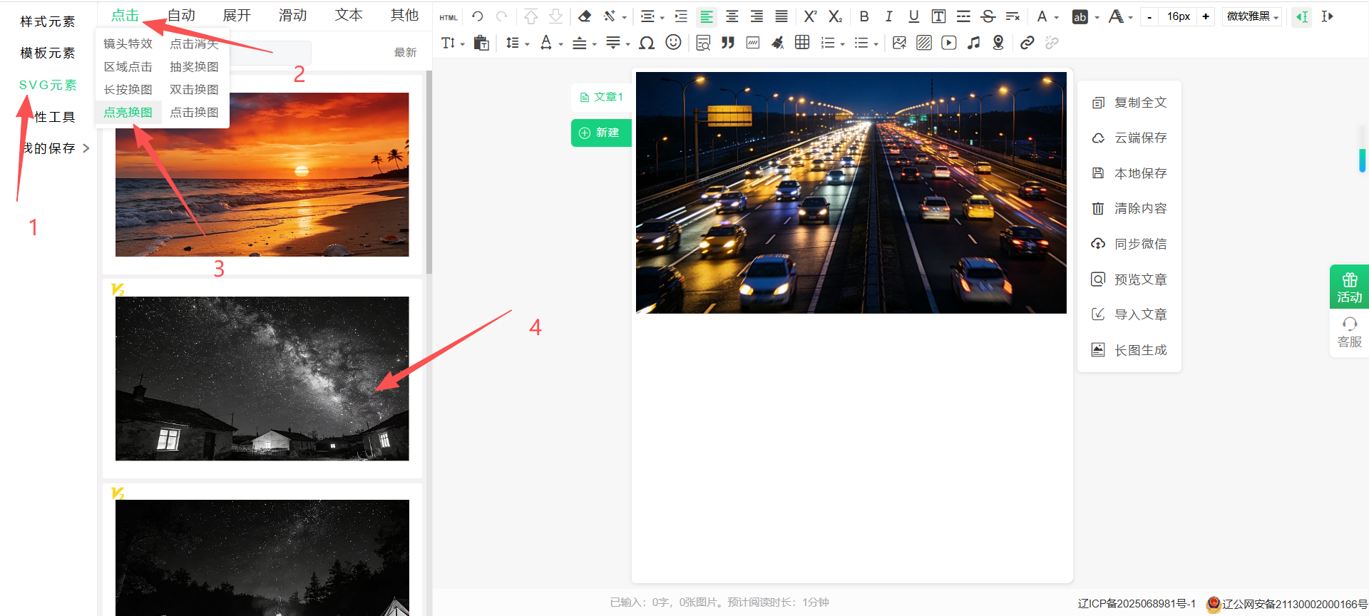 2:点击‘点击’栏目下的‘点亮换图’二级栏目