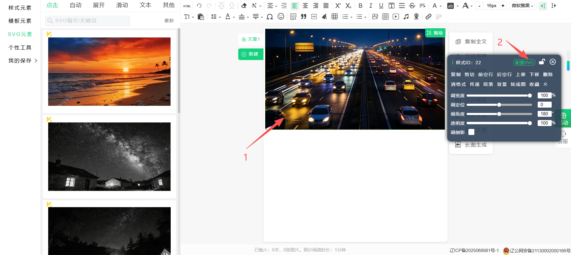5:右侧会弹出样式工具条,并点击配置svg按钮