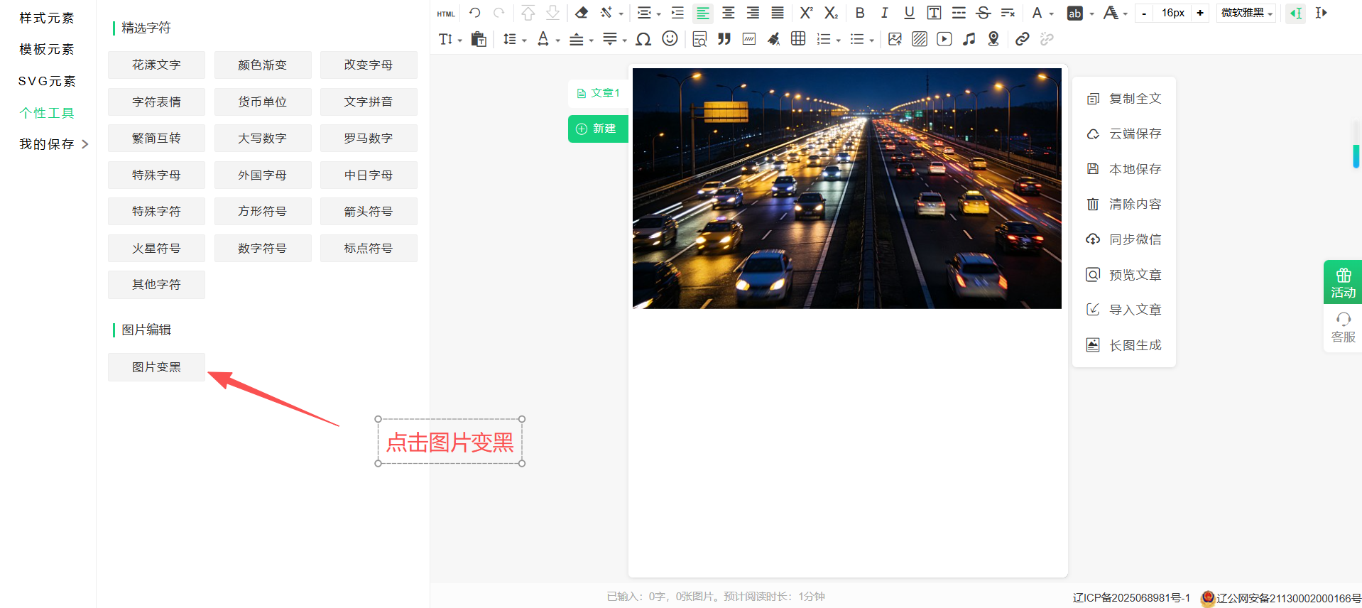 8:如果不会制作黑色图片,企鹅编辑器提供了工具箱可以直接生成黑色图片