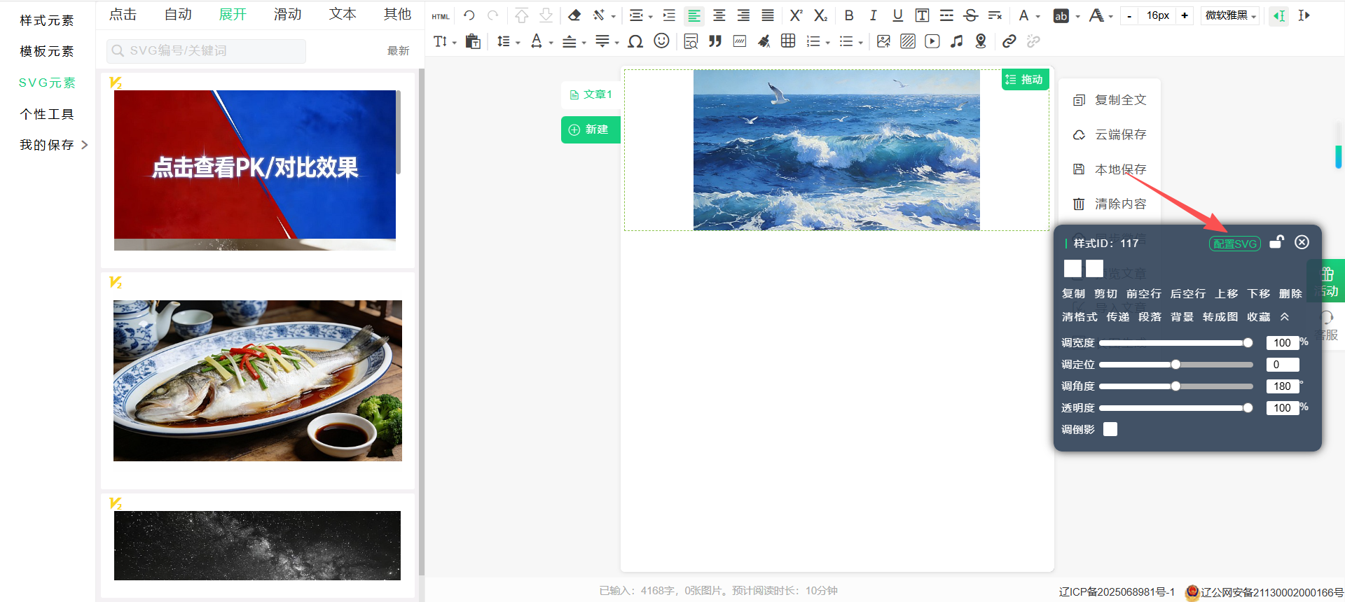 4:点击选中的svg特效,右侧会弹出样式工具条并点击配置svg按钮