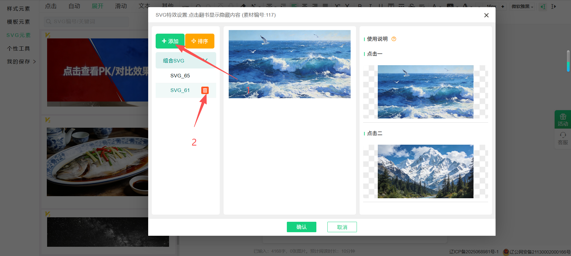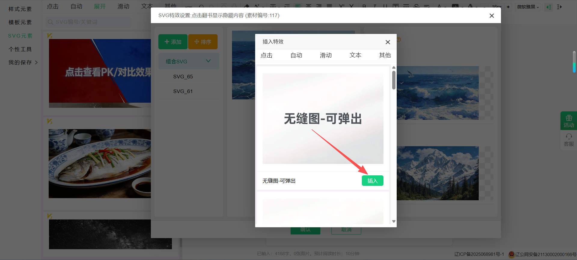 6:点击添加按钮,选择一个要插入的svg特效,并点击插入按钮