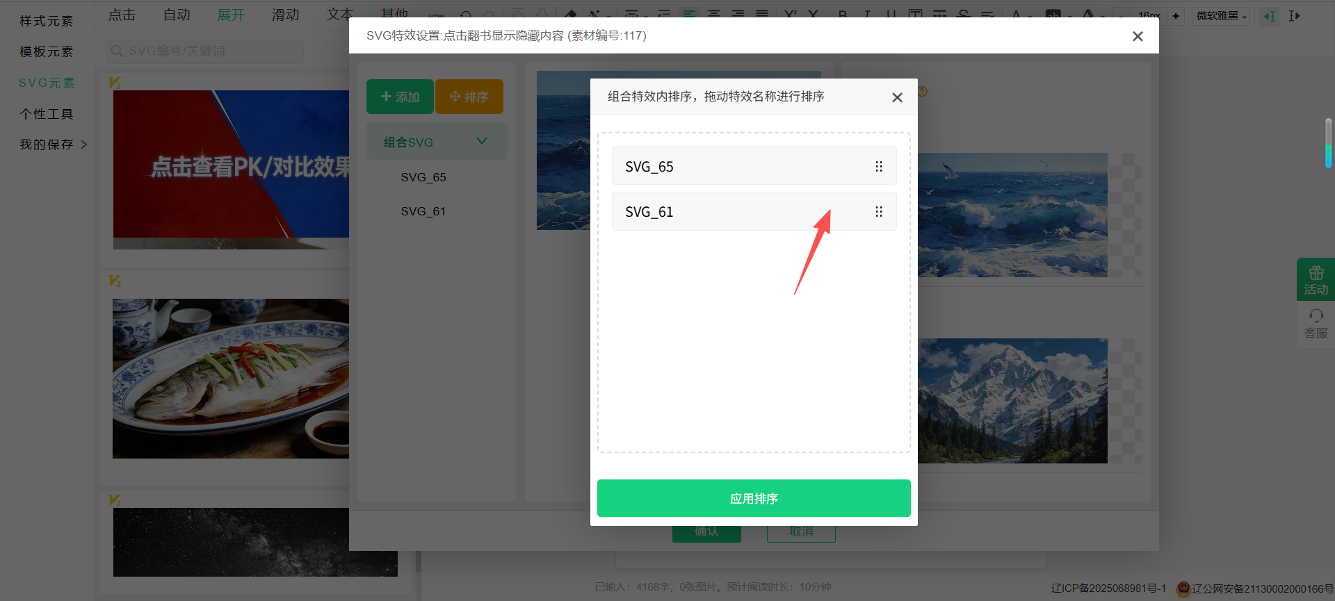7:点击排序按钮,进行组合特效的显示顺序位置