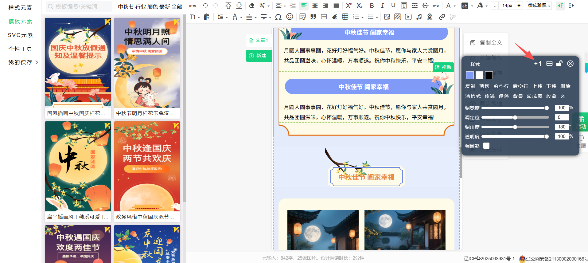 +1的作用的可以理解为快速的复制当前选中的特效和黏贴样式,这个功能在编辑模板元素时尤为重要,可以大大提高排版效率