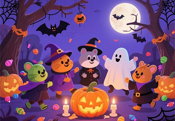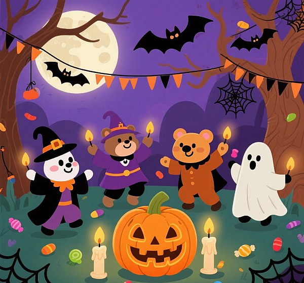 南瓜灯闪烁顽皮目光,小幽灵游荡在嬉笑海洋。小法师挥动神奇魔杖,小仙子拎着糖果竹筐,“捣蛋或款待”他们画出歪斜骷髅图像;旋律飘扬,孩童们随着怪兽节奏摇晃。这场悉心安排的奇妙庆典,默默为幼年时光镀上金辉般的魔法光芒。