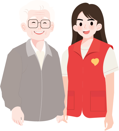 vip1商务风格敬老爱老暖人心爱心建筑城市前的老人和志愿者模板