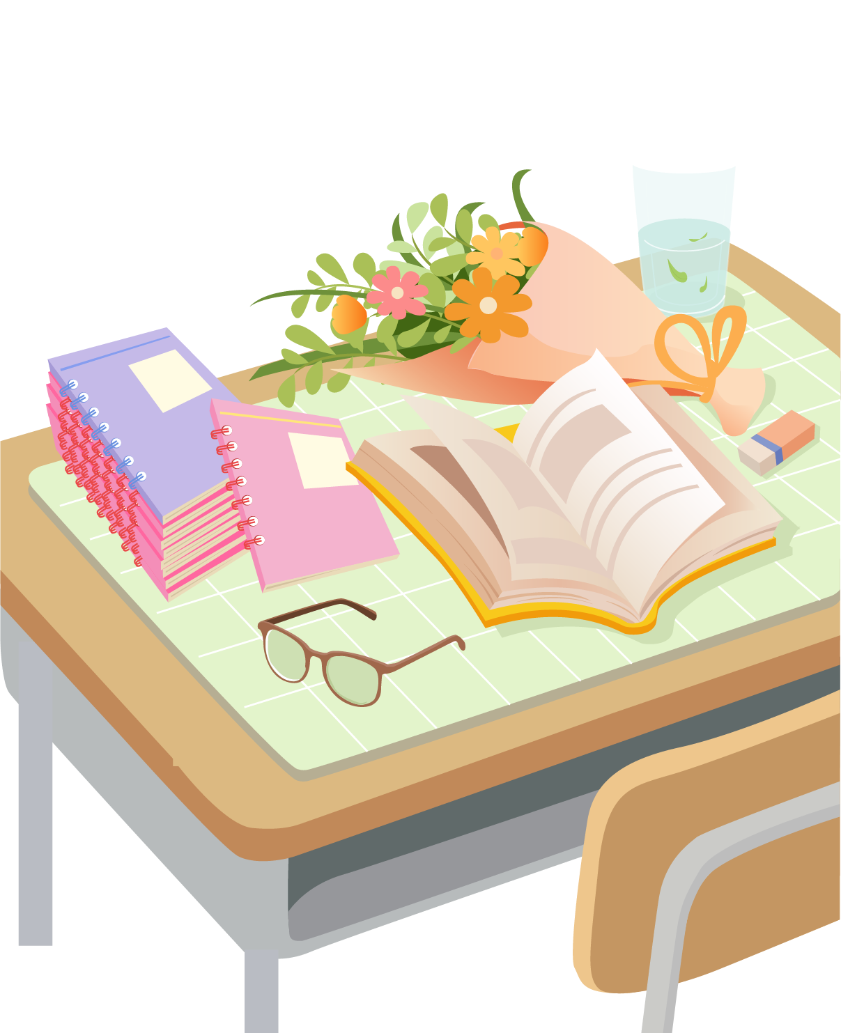 vip1简约文艺 开学教研 一字一句皆风景一章一节是征程 课桌书本鲜花水杯橡皮眼镜楼层窗外风景模板