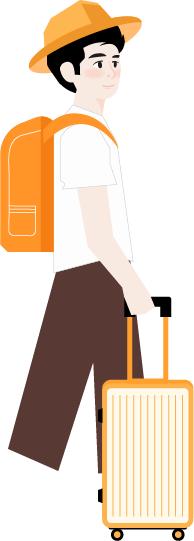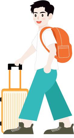 vip1商务风格大学/入学须知标题纸张上背书包拿着手提箱的两个男生模板