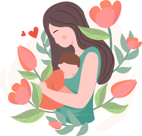 vip1文艺风育儿小课堂母亲抱着孩子站在花丛中模板