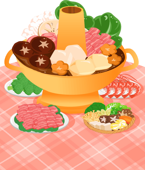 vip1卡通可爱风格幼儿园冬日吃火锅主题活动火锅食材叶子模板