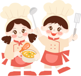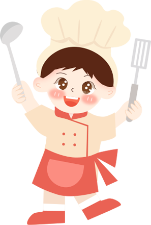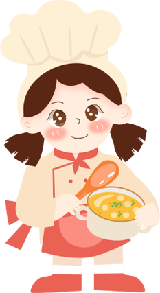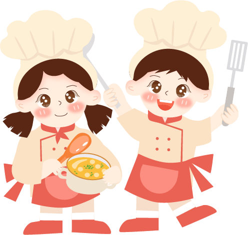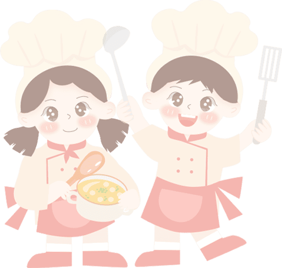 vip1卡通可爱风格幼儿园食谱云朵框下面的食物穿着厨师帽的男孩女孩模板