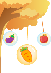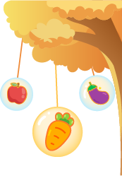 vip2卡通可爱风幼儿园食谱男孩女孩在云朵上吃饭云朵下边吊着蔬菜水果模板