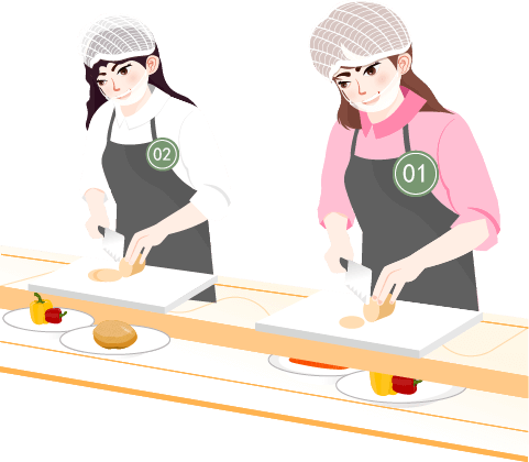 vip2卡通风幼儿园烹饪比赛两个女教师在比赛切菜模板