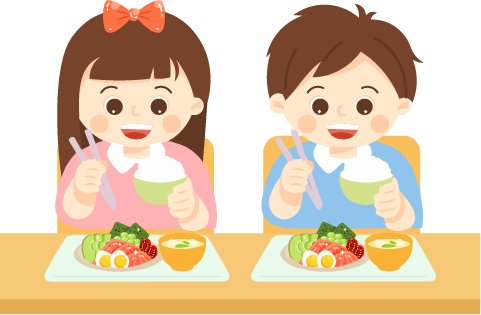 vip1简约风幼儿园第八周食谱坐在餐桌前吃饭的男孩女孩模板