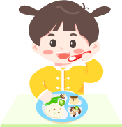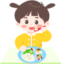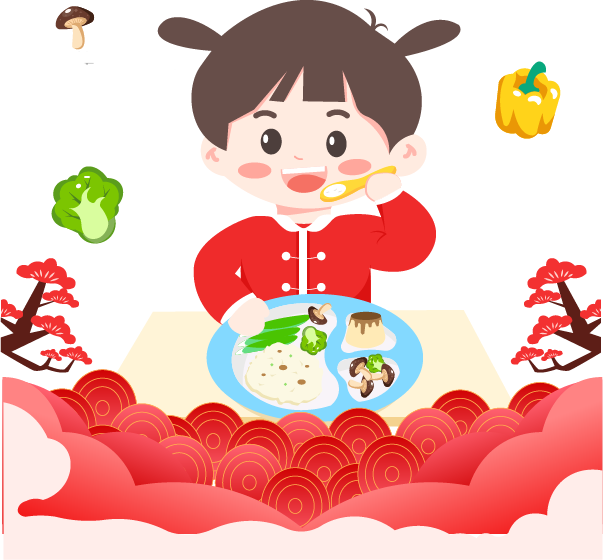 vip2卡通风本周营养食谱餐桌前吃饭的红衣女孩香菇白菜模板