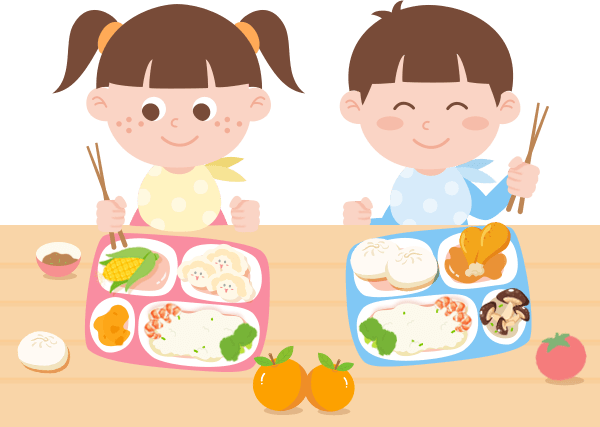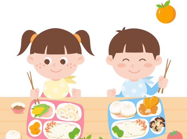 vip2文艺风幼儿园本周营养食谱围餐巾拿筷子吃饭的男孩女孩模板