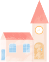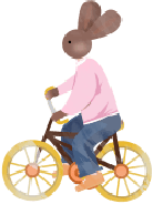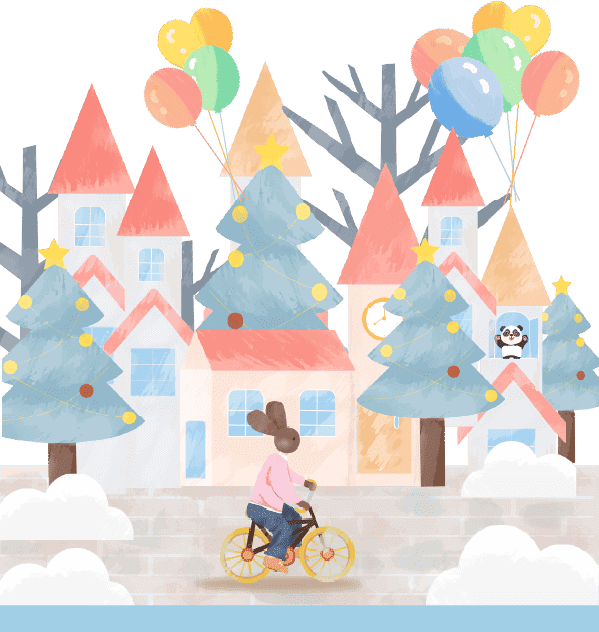 vip1笔刷风格文艺风格云朵下面的房子和气球骑着自行车的兔子模板