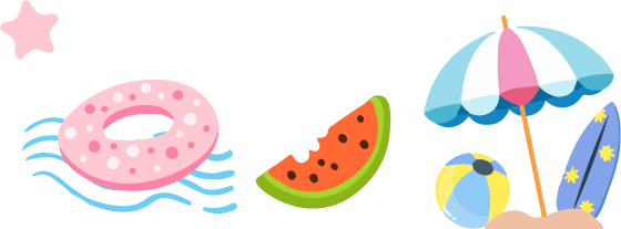 企鹅编辑器提供《文艺风暑期放假通知及温馨提示小彩旗叶子白云潜水眼镜照相机音符星星救生圈游泳圈西瓜太阳伞沙滩球冲浪板模板》公众号模板,模板ID:34588 ,适用于微信公众号排版设计,本样式设计中包含了