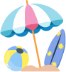 vip1文艺风暑期放假通知及温馨提示小彩旗叶子白云潜水眼镜照相机音符星星救生圈游泳圈西瓜太阳伞沙滩球冲浪板模板