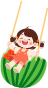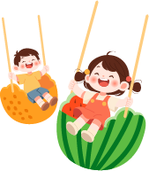 vip1卡通风童心飞扬探索无限欢乐童年快乐六一西瓜秋千橙子秋千花朵蓝天白云绿草地小男孩小女孩模板