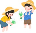 vip1通用风5.21小满传统二十四节气稻田里两个小孩在插秧蓝天白云远山模板