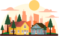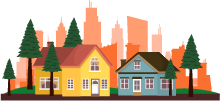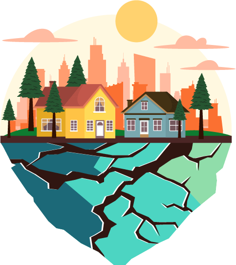 vip2扁平风5.12全国防灾减灾日城市背景房屋树木土地裂痕叶子模板