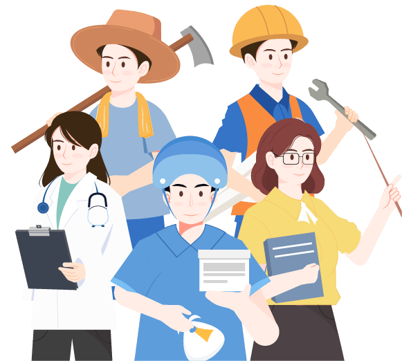 vip1文艺风格节日五一劳动节相框里的不同职业的劳动者男女和花草合照模板