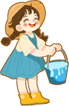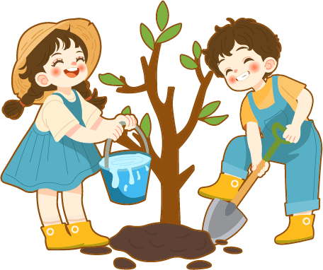 vip2卡通风3.12植树节植下希望放飞梦想提水桶的小女孩挖土的小男孩模板