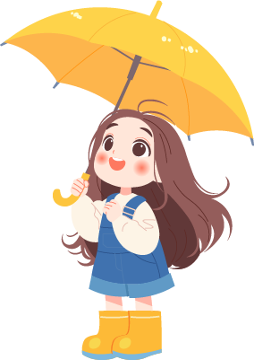 vip2文艺卡通风惊蛰二十四节气下雨天打着雨伞的小女孩花草柳叶打雷模板
