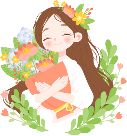 vip2卡通文艺风3.8女神节快乐献给最美的你抱着花的女孩模板