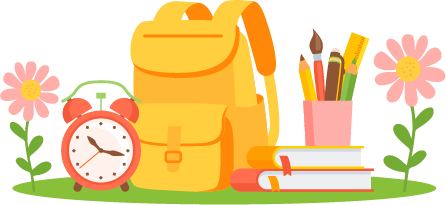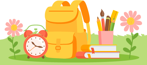 vip2文艺卡通风格小学春季新学期开学典礼背着书包的小男孩小女孩提着灯笼的蛇书包闹铃笔筒书本花朵蝴蝶太阳模板