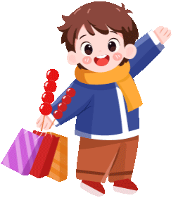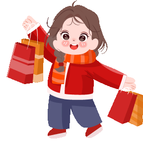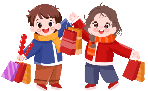 vip2卡通可爱风春节年味迎新春拿着购物袋的男生女生模板