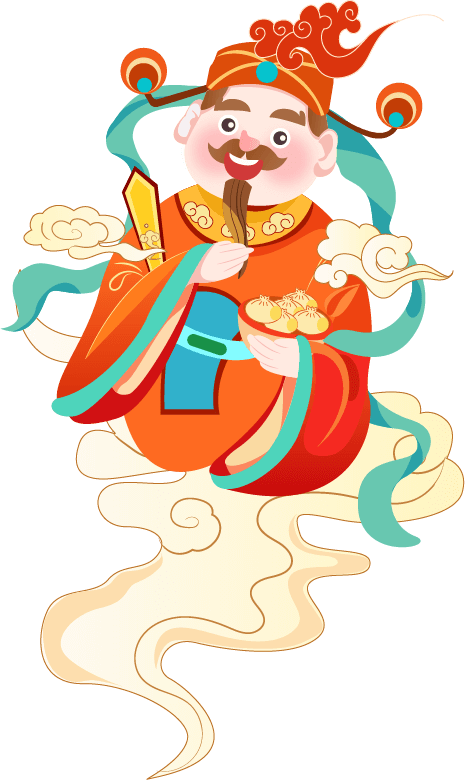 vip2卡通可爱风春节今日小年摸胡子的灶王爷和燃烧的灶台模板