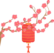 vip2笔刷质感风春节走访慰问暖人心 红色波纹下树枝上挂着灯笼模板