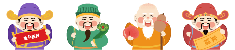 vip2卡通可爱风财源滚滚左右两边的财神福禄寿卡通人物模板