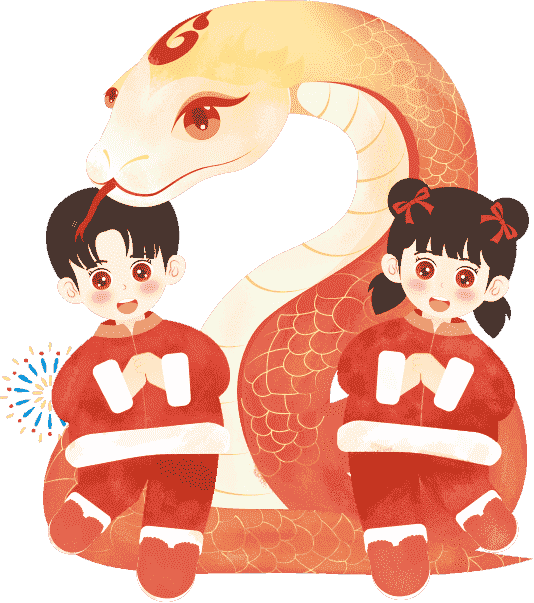 vip2笔刷卡通可爱风男孩女孩和小蛇一起迎新年庆元旦模板