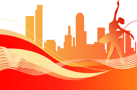 vip2政务风校园文化艺术节三个剪影跳舞的女生和不规则线条模板