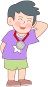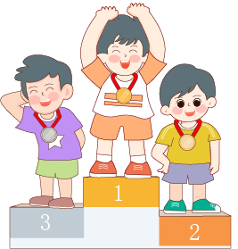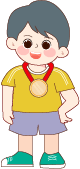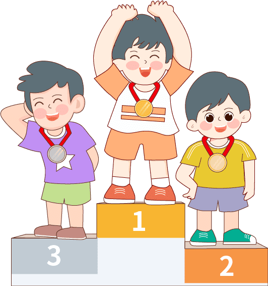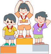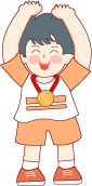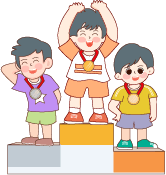 vip2描边卡通可爱风格小学秋季运动拿着奖杯的男孩和戴着奖牌男孩们模板