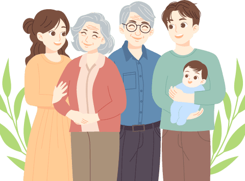 vip2文艺风格做健康老人享幸福人生两位老人与两位年轻人带着一个小孩模板