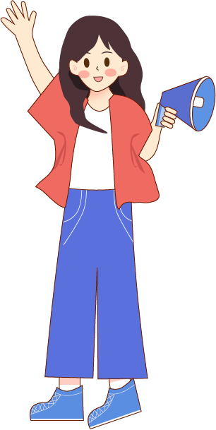 女生拿着喇叭招手