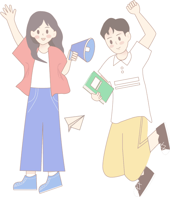 vip2描边风格大学社团招新不规则图形里面的男生女生在为社团招新做准备模板