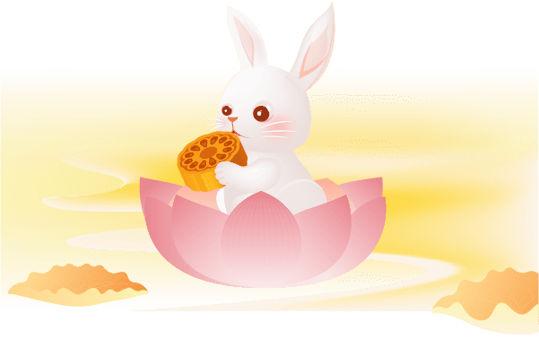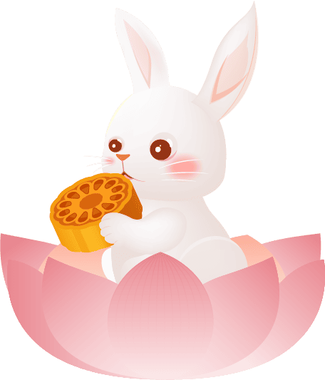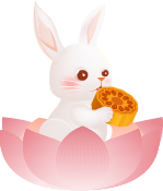vip2卡通可爱风节日中秋莲花中心坐着拿月饼的兔子模板