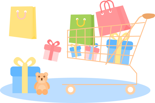 小清新风双十二购物车礼品袋礼物盒模板
