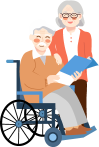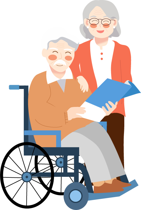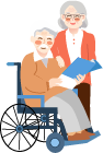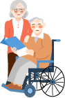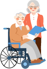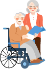 vip2文艺风格养老花草前面老太太和坐在轮椅上的老头模板