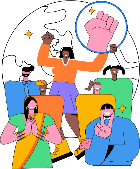 vip2描边风格国际青年日肤色不一各国家的男女模板