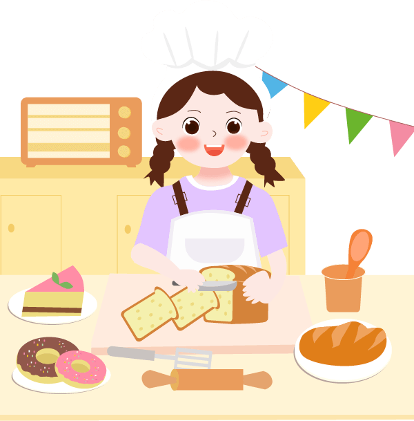 vip1卡通可爱风格幼儿园开学小朋友把烘焙好的面包切片模板