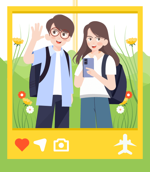 vip1文艺风旅游假期出游攻略男生女生在相框里拍照模板