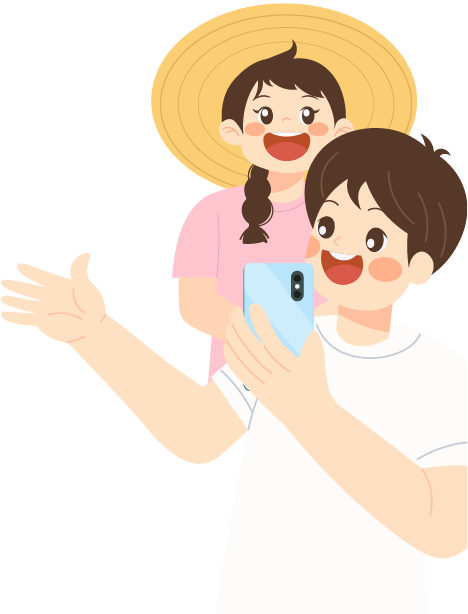 vip2卡通风农产品男孩在给桃子拍照女孩在后面看着模板