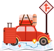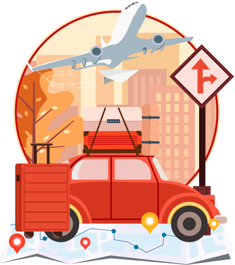 vip2渐变春节小长假 出游攻略小汽车行李灯笼地图烟花模板