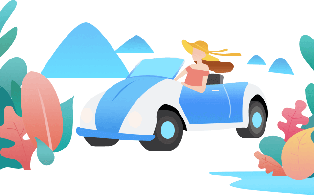 vip1简约卡通风五一旅游出行攻略女孩开着小轿车模板
